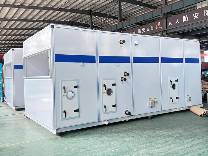 风机、电机均采用严格质量标准的名优产品。风机为双进风、前倾离心风机,都经过严格的动、静平衡试验。有众多的型号和尺寸可供选用,以满足不同场合的风量和风压要求。并通过专业风机应用软件进行选型,获得更佳的风机工作点、风机效率和噪音级。